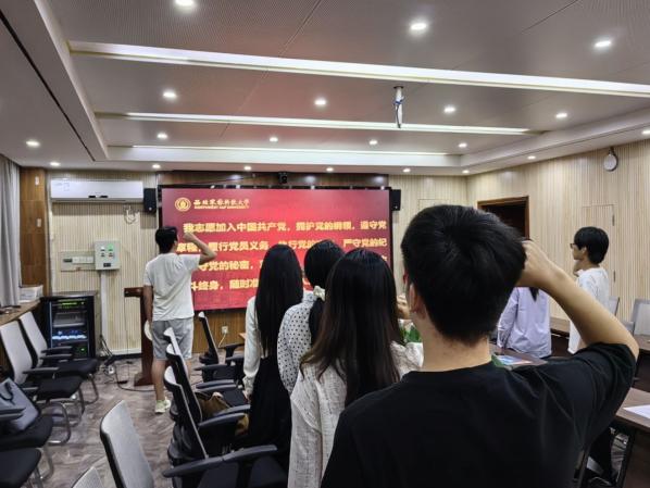随后,党支部书记段屈雨同志为支部党员讲授党课,结合深入贯彻中央八项规定精神学习教育的相关要求,勉励毕业生党员在新的人生起点上扣好“廉洁自律”的第一粒扣子,自觉增强纪律意识、严守纪律底线,坚定理想信念、永葆共产党人的政治本色。她指出,党员同志既要见贤思齐、向身边的榜样学习,也要在党和人民需要的地方勇挑重担、挺膺担当,以实际行动践行“复兴民族、誓作前锋”的重大精神。接着,全体党员庄严宣誓,重温入党誓词。