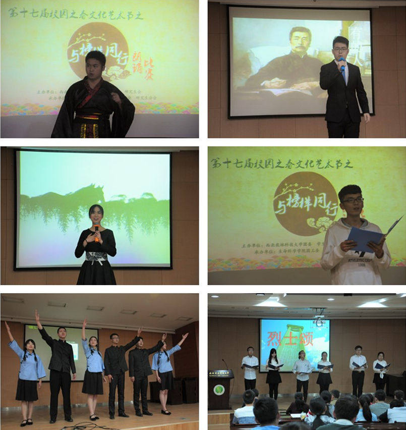 据悉,根据前期初赛海选,共有来自创新学院、水建学院、动科学院、园林学院、资环学院、葡萄酒学院等13个学院的8个个人与4支队伍挺进决赛,由于比赛提倡跨院组队,其中两支队伍的队员分别来自多个学院。决赛分为个人赛和团队赛,通过自选篇目和指定篇目两轮的竞演决定最终名次。
