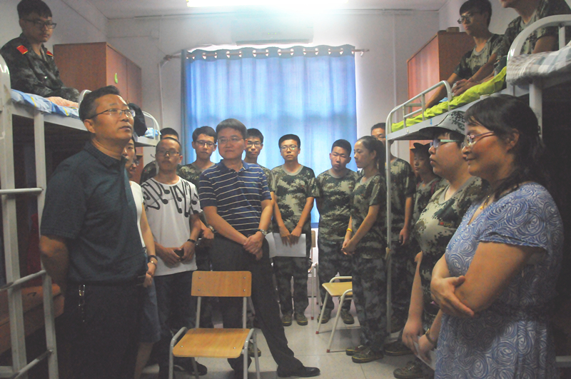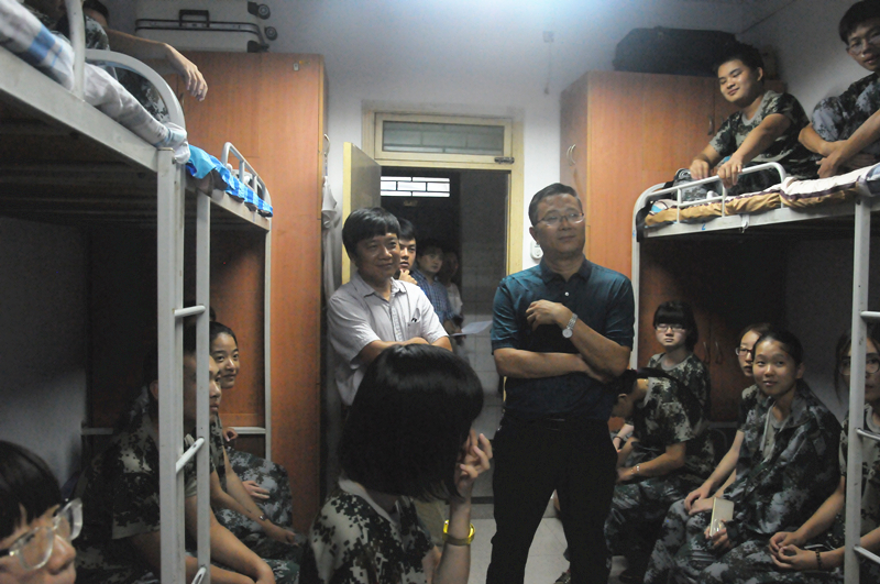 学院党委书记化小峰一进宿舍就仔细询问了同学们进校后的感受,以及饮食、住宿、适应性等情况,鼓励新生逐步提高自理、自立的能力,希望大家以积极的心态和良好的面貌尽快适应大学校园生活。院长郁飞向同学们讲述了我院优秀毕业生的例子,鼓励新生提早规划学业,不要虚度大学四年。