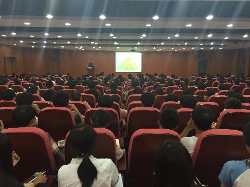 为引导同学们“合理定位,精确目标”,更好地适应大学生活,郁飞教授先用“马斯诺需求层次理论”启发同学们审视自己——我的位置在哪?我的追求是什么?我能做到哪一层次?并提出在社会需求中,自己的层次是可以通过学习与努力而改变的,但前提是要具备一定的能力!随即引出大学生在校期间应该培养自己的四种意识,即学习意识、竞争意识、坚持意识以及审辨意识。