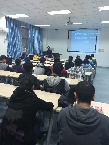 会上,撒老师以“关于参加2017年全国硕士研究生入学统一考试的几点建议”为题展开,结合自己多年从事我院研究生招生录取工作的经验,从历年考研报名形势、学校和专业的选择、网上报名流程、考前准备、笔试、复试、调剂注意事项等方面进行详细的介绍。同时,撒老师还以我校往年的招生流程为例,向同学们展示了学校在招生方面的一些重要政策,比如学费标准、奖助学金、调剂原则等等。撒老师鼓励同学们在学校选择中要争取主动,劝诫大家选择跨专业考研需谨慎,并预祝大家在考研中取得好成绩。最后,同学们与撒老师进行了互动交流,气氛热烈。
